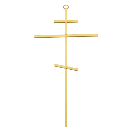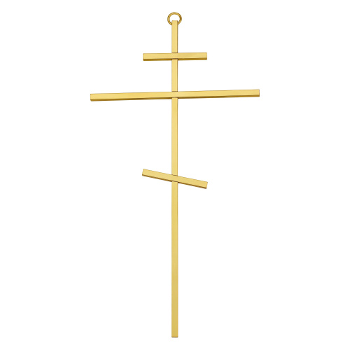 The cross is elegantly gold-plated and meticulously polished on all four sides. Individually Boxed. The gold-plated cross has a slim profile, measuring approximately 5-Inch x 10-Inch, and is solid at 3/16-Inch Square.