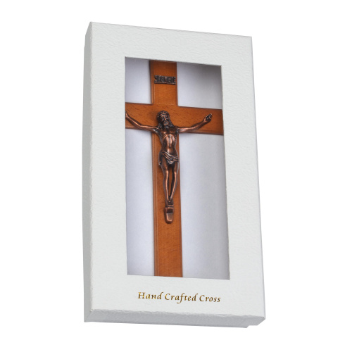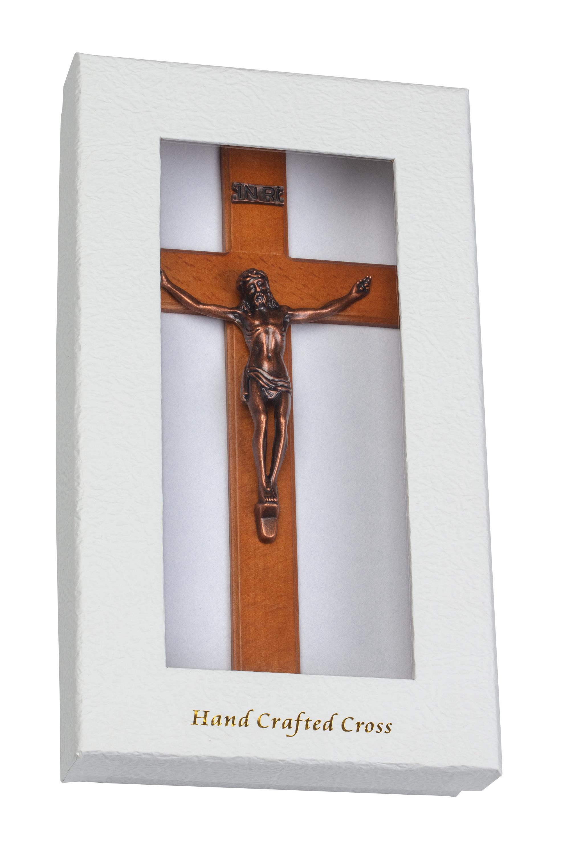10-inch Wood-Carved Maple Finish Crucifix with Bronze Corpus