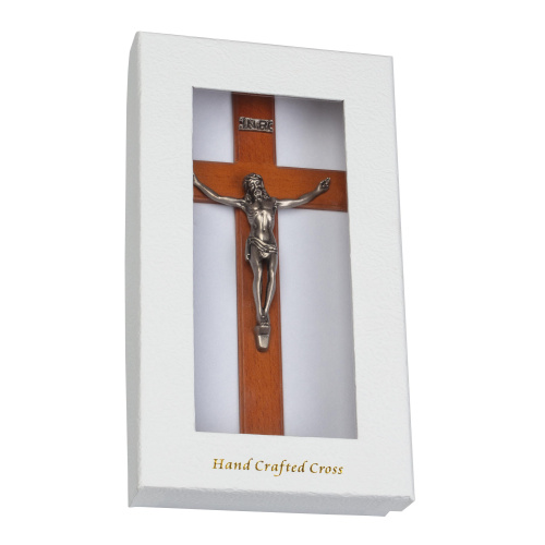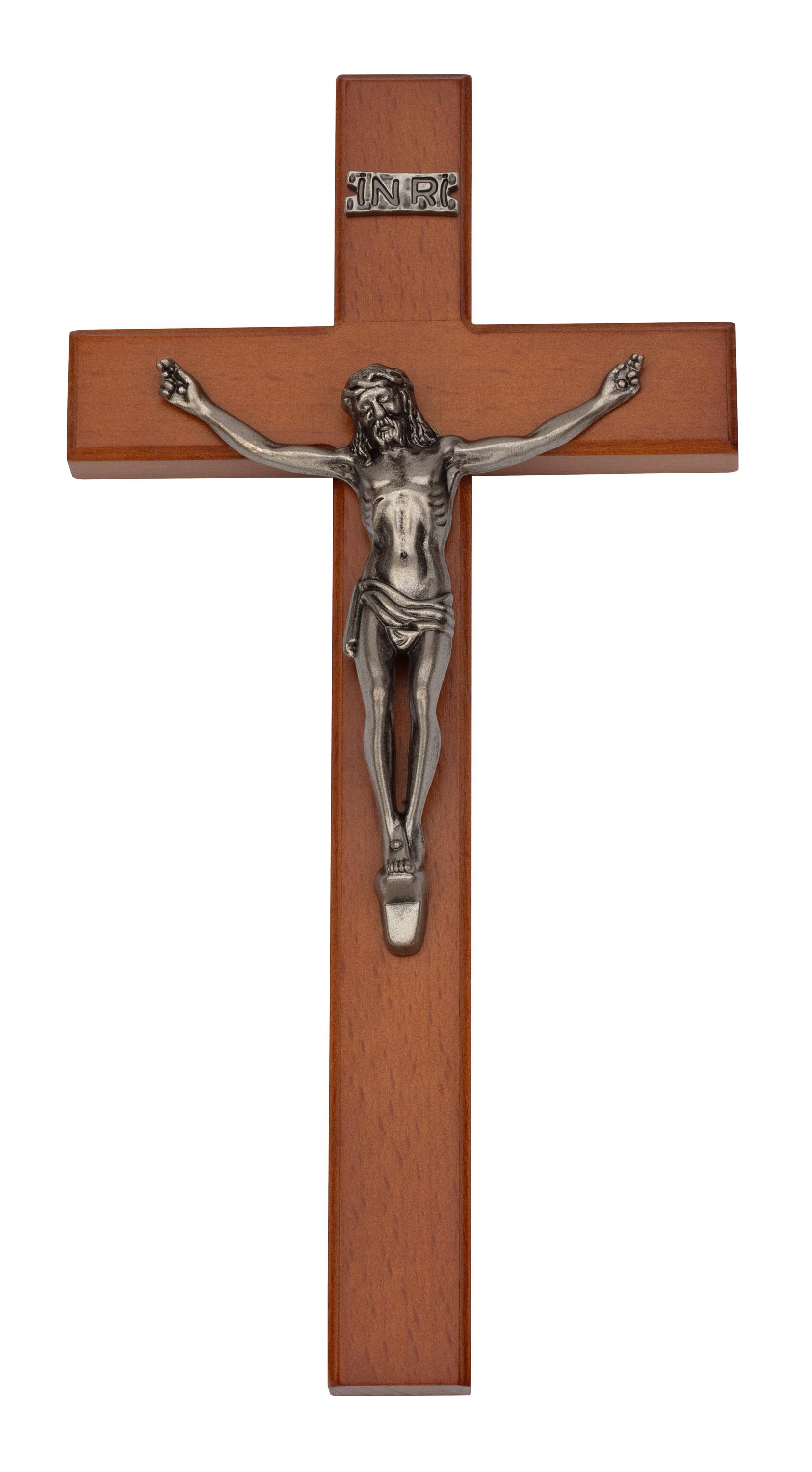 10-inch Walnut Wood Crucifix with Antique Silver Corpus