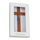 10-inch Wood Cross with Gold Metal Inlay and Bronze Risen Christ