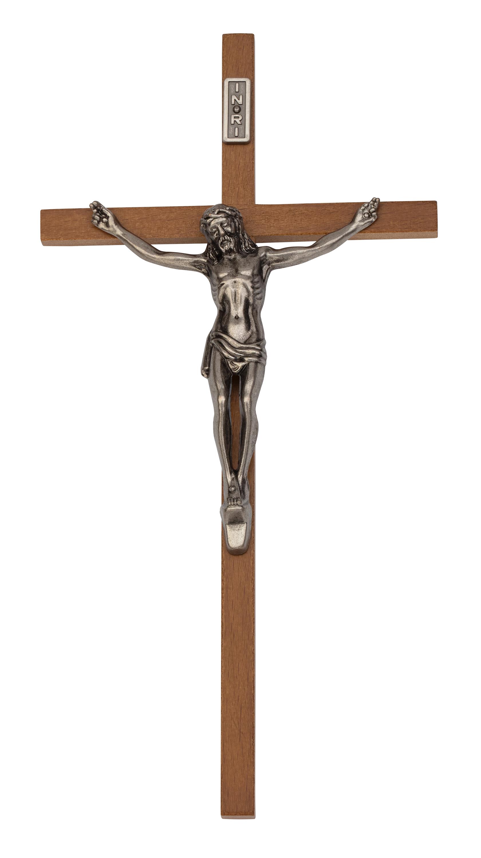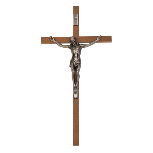 10-inch Walnut Wood Crucifix with Antique Silver Corpus