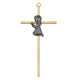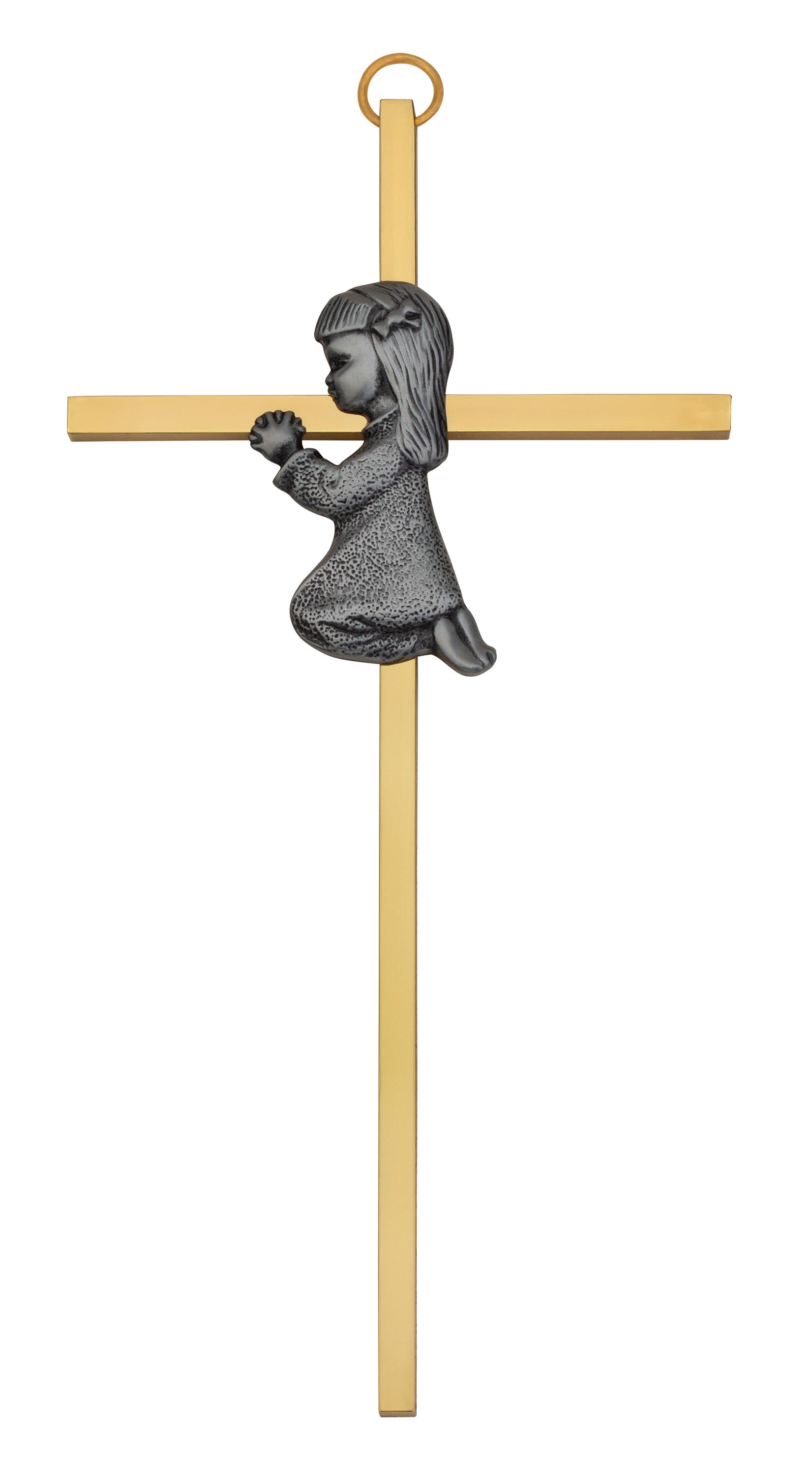 The cross is elegantly gold-plated and meticulously polished on all four sides, with an silver-tone kneeling praying girl that enhances depth and dimension in the design. Individually Boxed. The gold-plated cross has a slim profile, measuring approximately 2-Inch x 7-Inch.