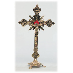 Crucifix with Base Gold Tone W Red Inlay 9 inch
