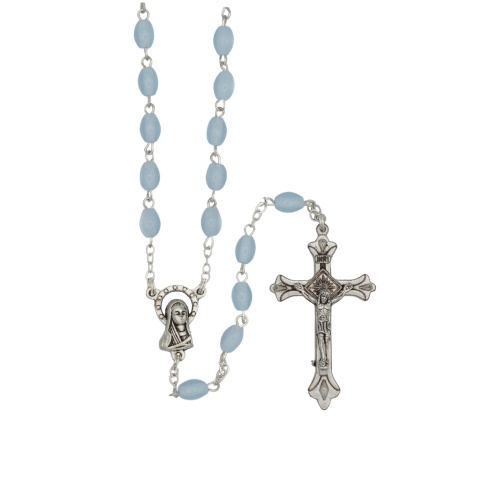 Rosary Oval Shaped Pale Blue 5Mm Beads W 18-inch Chain