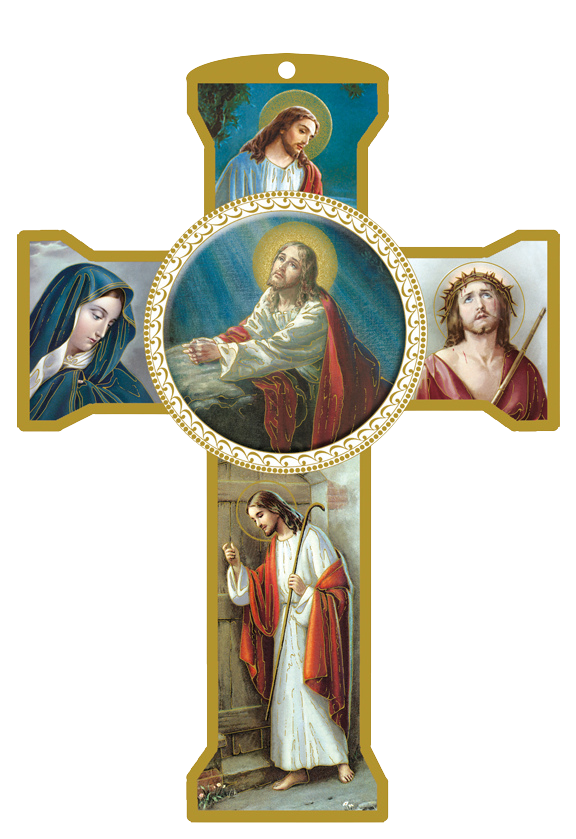 This stunning Christ in the garden Cross feature a rich, intricate design, showcasing revered Christian icons. The beautifully crafted cross is adorned with sacred images of Christ and the Virgin Mary, making it not only a religious symbol but also a piece of sacred art. Its detailed iconography and vintage-style finish create a spiritual ambiance for your home, church, or personal altar.