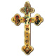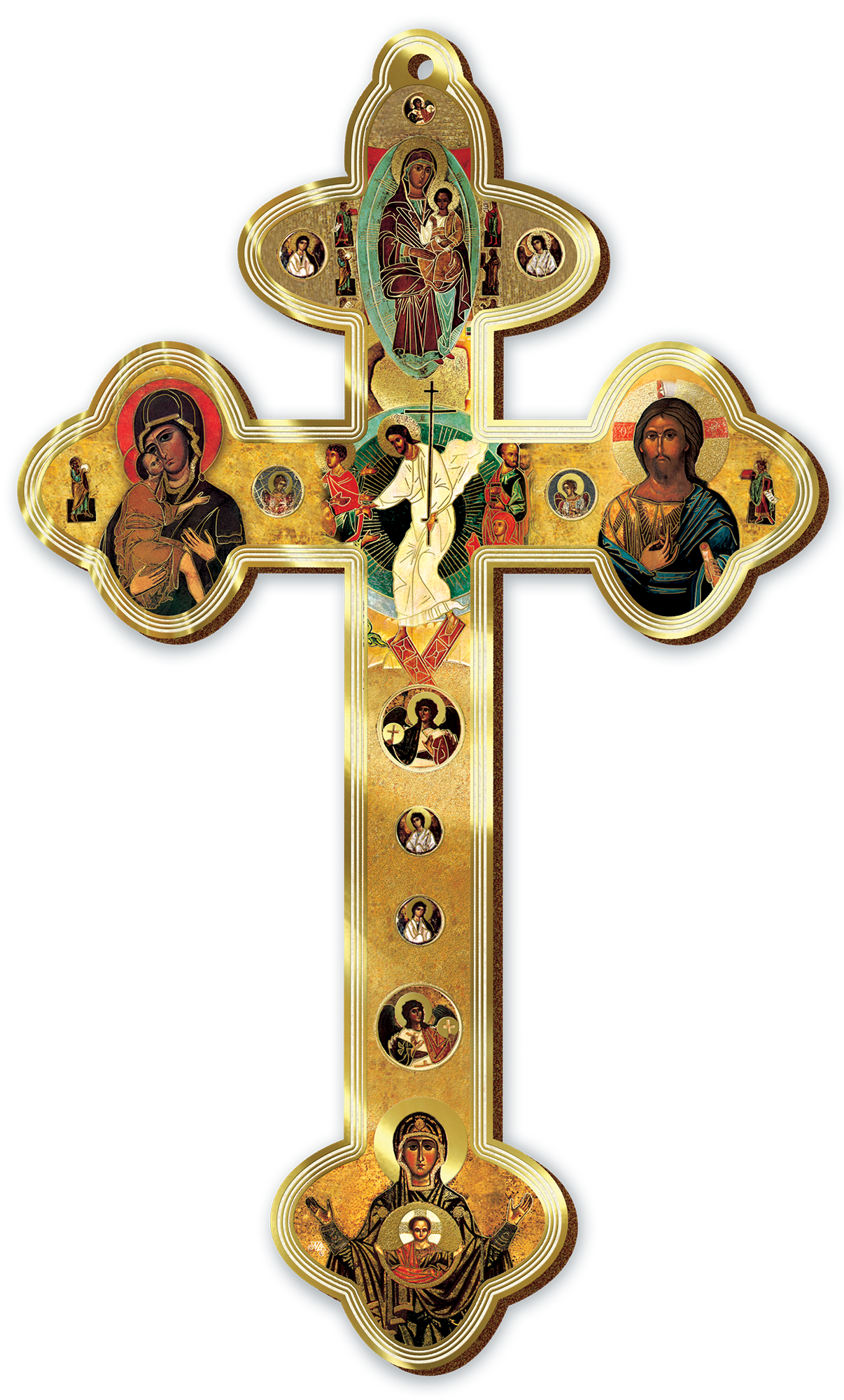 This stunning Traditional Orthodox Cross feature a rich, intricate design, showcasing revered Christian icons. The beautifully crafted cross is adorned with sacred images of key religious figures, including Christ, the Virgin Mary, and various saints, making it not only a religious symbol but also a piece of sacred art. Its detailed iconography and vintage-style finish create a spiritual ambiance for your home, church, or personal altar.