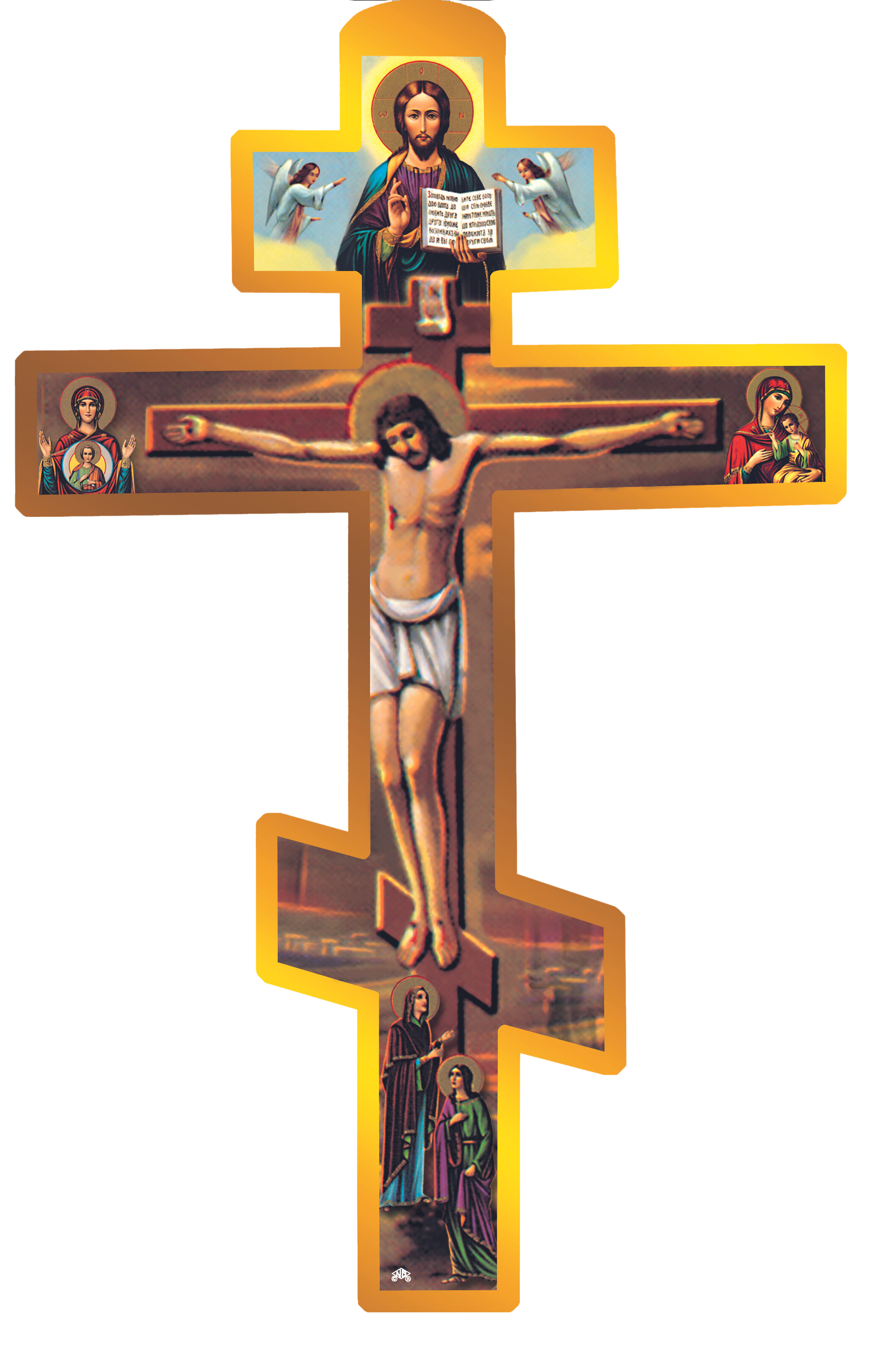 This stunning wood eastern orthodox crucifix feature a rich, intricate design, showcasing revered Christian icons. The beautifully crafted crucifix is adorned with sacred images of key religious figures, including Christ, the Virgin Mary, and various saints, making it not only a religious symbol but also a piece of sacred art. Its detailed iconography and vintage-style finish create a spiritual ambiance for your home, church, or personal altar.