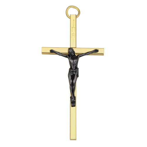 The crucifix is elegantly gold-plated and meticulously polished on all four sides, with an antique silver-tone corpus that enhances depth and dimension in the design. To ensure lasting beauty, it is finished with a protective lacquer and a rich patina. Individually Boxed. The gold-plated crucifix has a slim profile, measuring approximately 2-Inch x 4-Inch.
