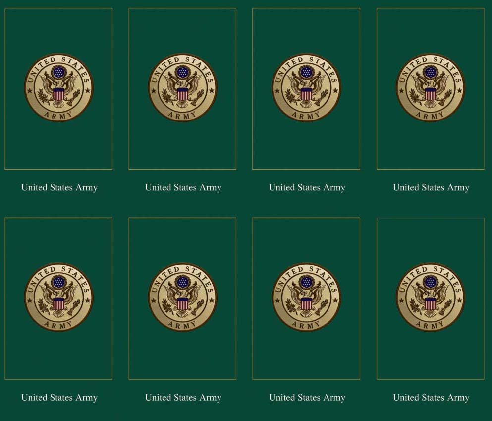 Prayer Card: Beautifully detailed color images of Army Emblem on micro-perforated cards.