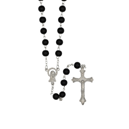 BLACK 5MM WOODEN ROSARY WITH A 20-INCH LINKED CHAIN