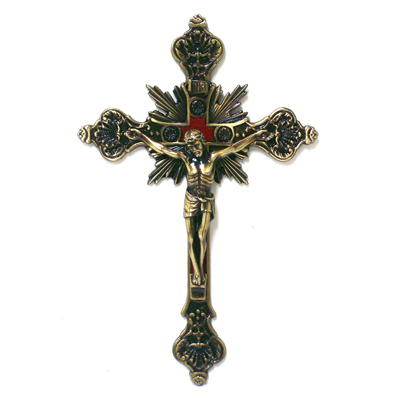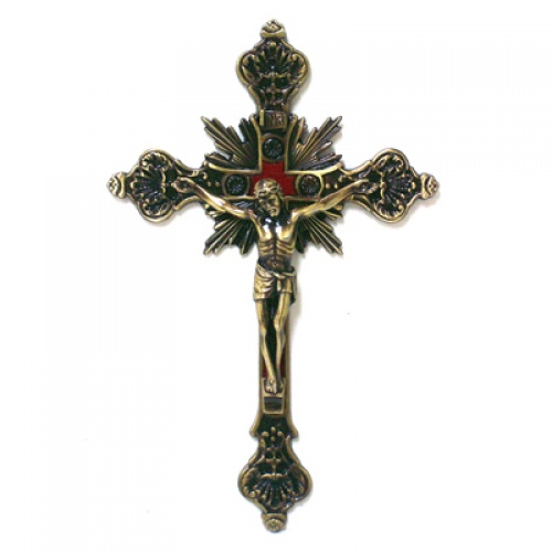 CRUCIFIX WALL BRONZE TONE W RED INLAY 12-INCH