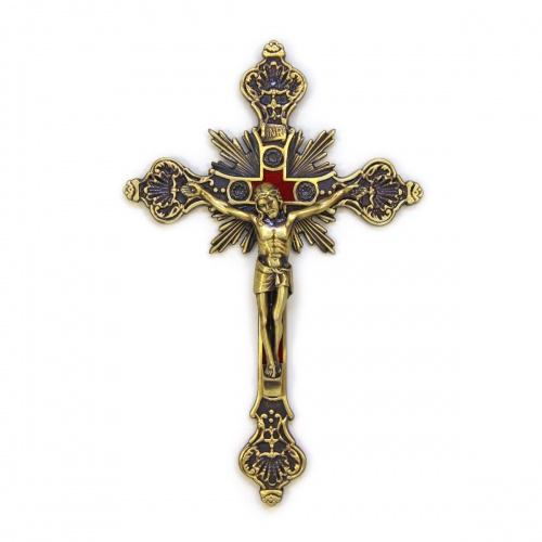 Crucifix Wall Bronze Tone W Red Inlay 8-inch