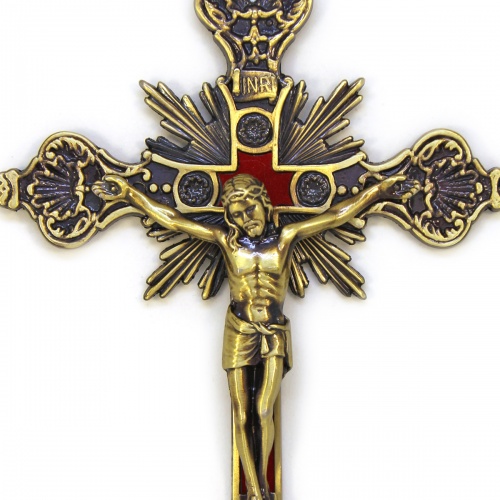 Crucifix Wall Bronze Tone W Red Inlay 8 inch