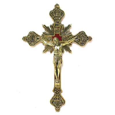 CRUCIFIX WALL GOLD TONE W RED INLAY 8-INCH