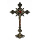 Crucifix with Base Bronze Tone W Red Inlay 9 inch