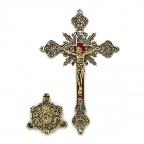 Crucifix with Base Gold Tone W Red Inlay 12 inch