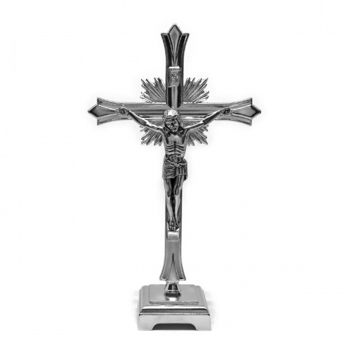 CRUCIFIX WITH BASE SILVER 9 INCH