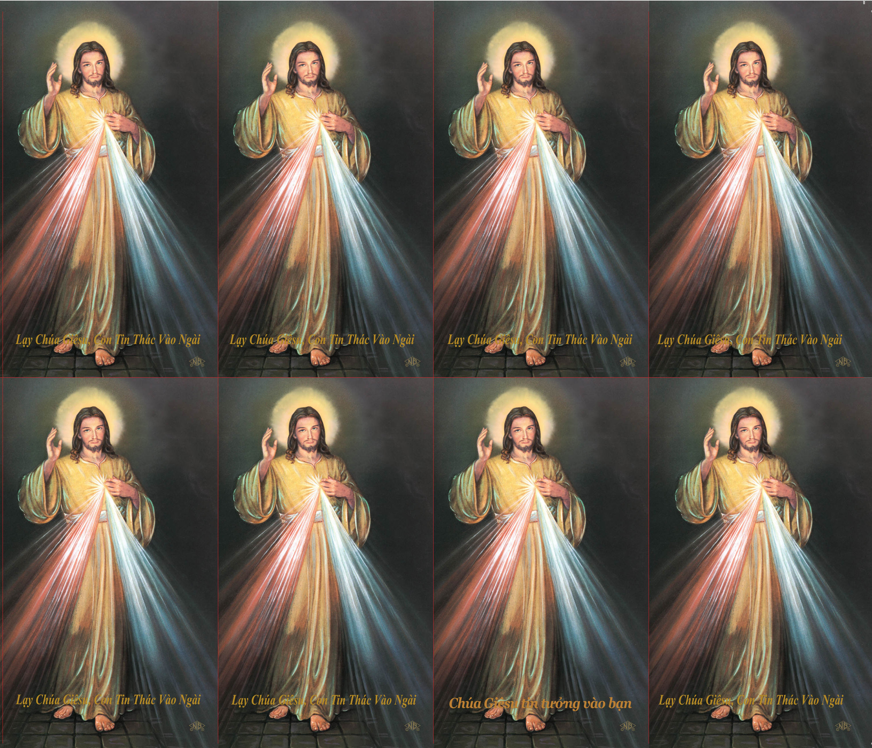 Prayer Card: Beautifully detailed color images of Divine Mercy Vietnamese on micro-perforated cards.