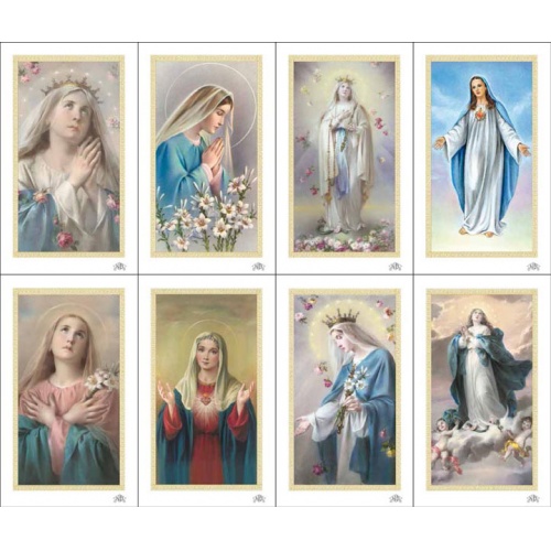 Prayer Card: Beautifully detailed color images of Heavenly Queen of Heaven on micro-perforated cards.