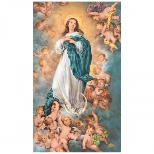 Prayer Card: Beautifully detailed color images of Immaculate Conception on micro-perforated cards.