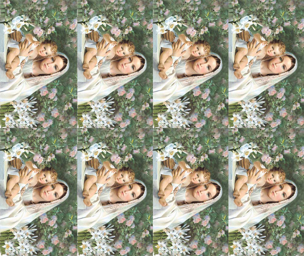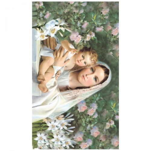 Prayer Card: Beautifully detailed color images of Madonna with Lillies on micro-perforated cards.