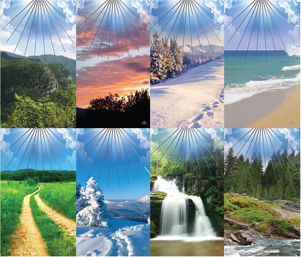 Prayer Card: Beautifully detailed color images of Nature Silver Foil on on micro-perforated cards