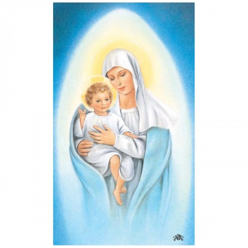 Prayer Card: Beautifully detailed color images of Our Lady of Snow on micro-perforated cards.