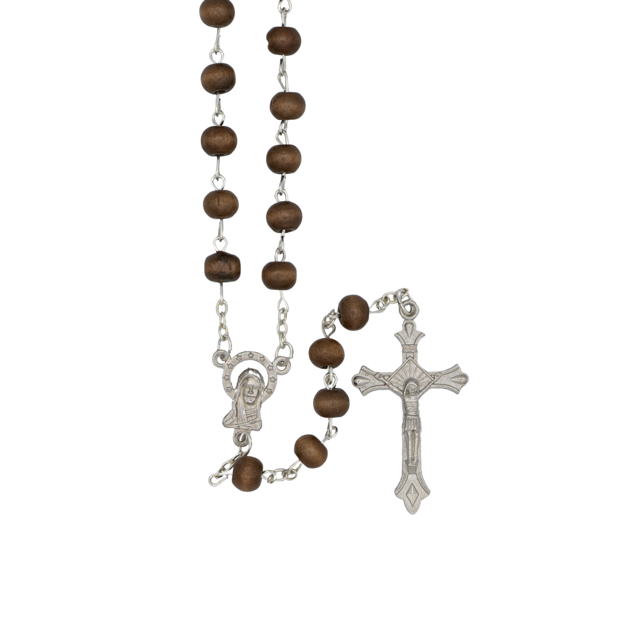 Deluxe Rosary,&sp; Brown 5mm Wood Beads with 20" Silver Chain