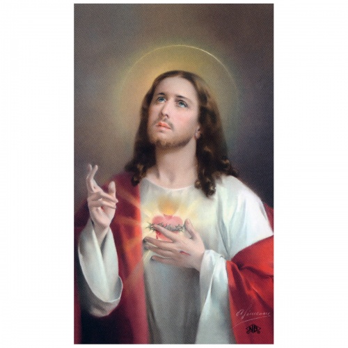 Prayer Card: Beautifully detailed color images of Sacred Heart of Jesus on micro-perforated cards.