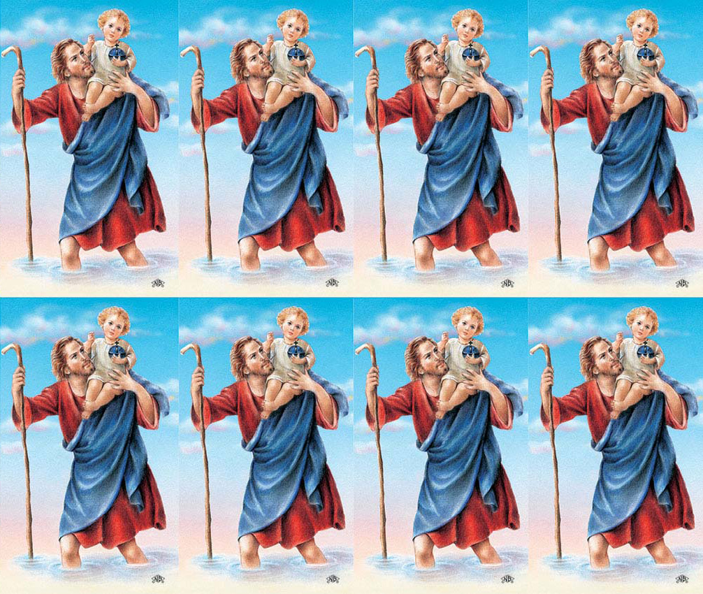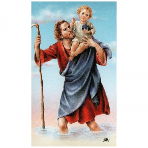 Prayer Card: Beautifully detailed color images of Saint Christopher on micro-perforated cards.