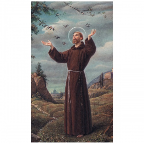 Prayer Card: Beautifully detailed color images of Saint Francis of Assisi on micro-perforated cards.