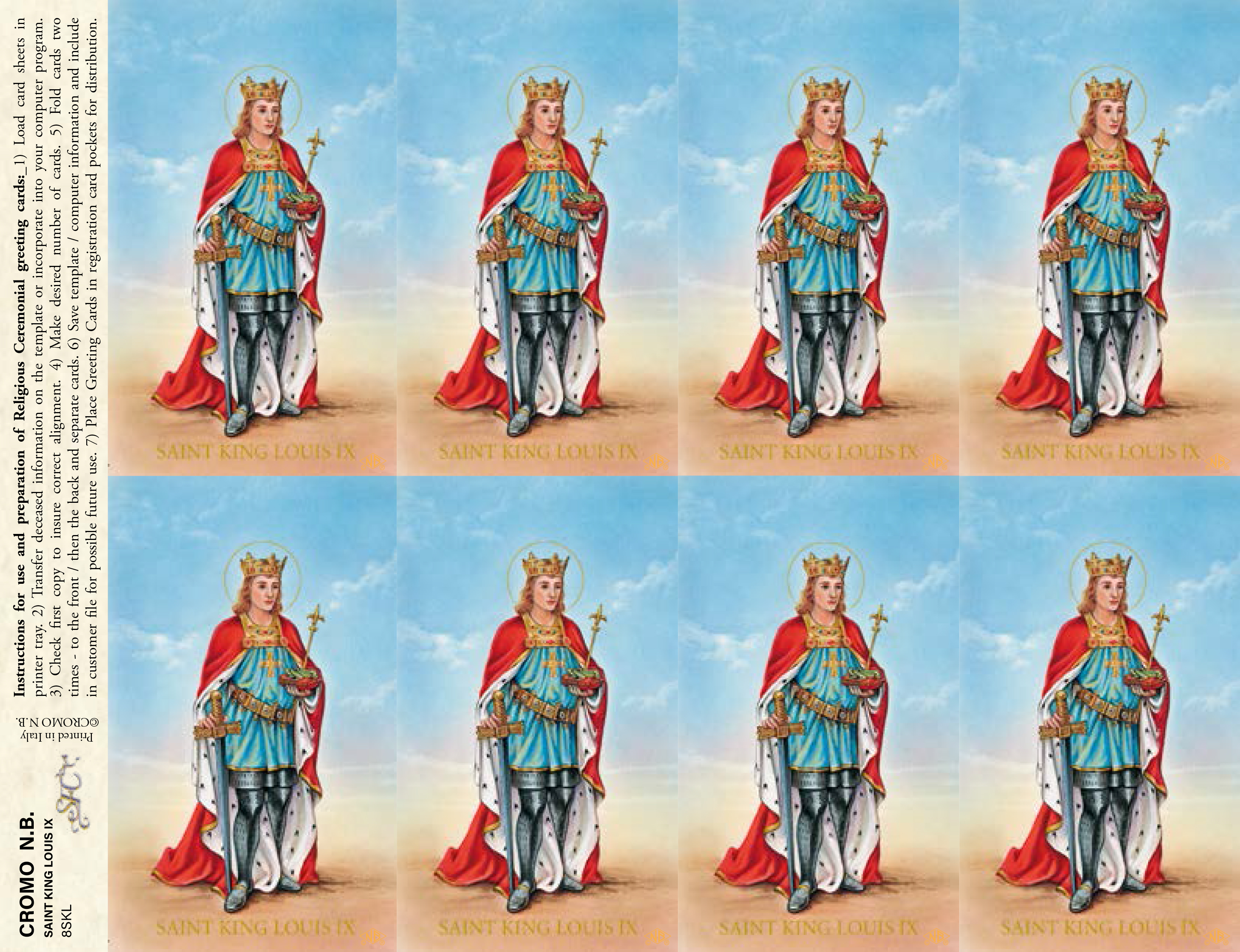 Prayer Card: Beautifully detailed color images of Saint King Louis on micro-perforated cards.