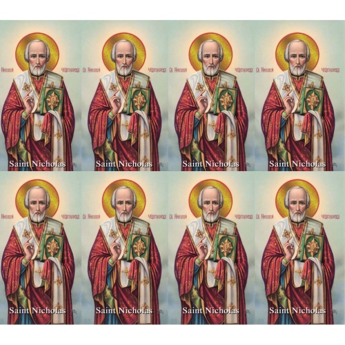 Prayer Card: Beautifully detailed color images of Saint Nicholas on micro-perforated cards.