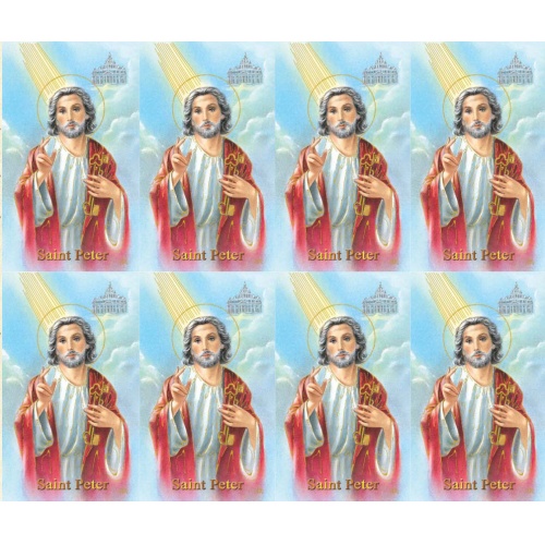 Prayer Card: Beautifully detailed color images of Saint Peter with Key To Heaven on micro-perforated cards.