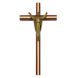 10-Inch Walnut Wood Finish Crucifix with Gold-Plated Inlay and Bronze Corpus